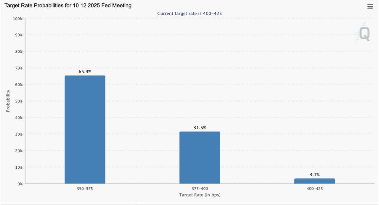CMEのFedWatchツールによると、次回10月のFOMCでは0.25%の利下げ予想が87.7%と先週の93.4%からは低下したものの、まだ大半を占めていますね。なお、この先3回連続の利下げ予想は先週の約4割から2割程度に低下したようです。