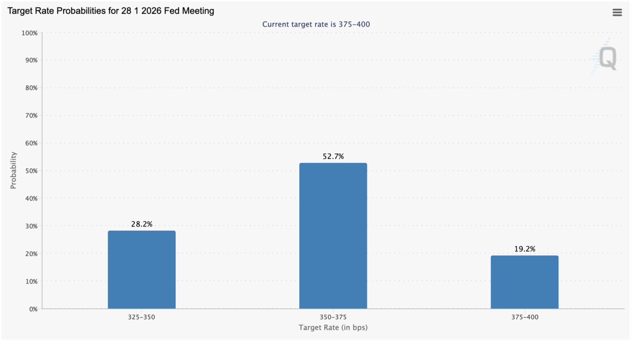 CMEのFedWatchツールによると、次回12月のFOMCでは0.25%の利下げ予想が66.9%と先週の69.3%から若干下げる結果となっています。反対に、1月のFOMCでの連続利下げ予想は28.2%と先週の23.0%から上げる結果となっています。