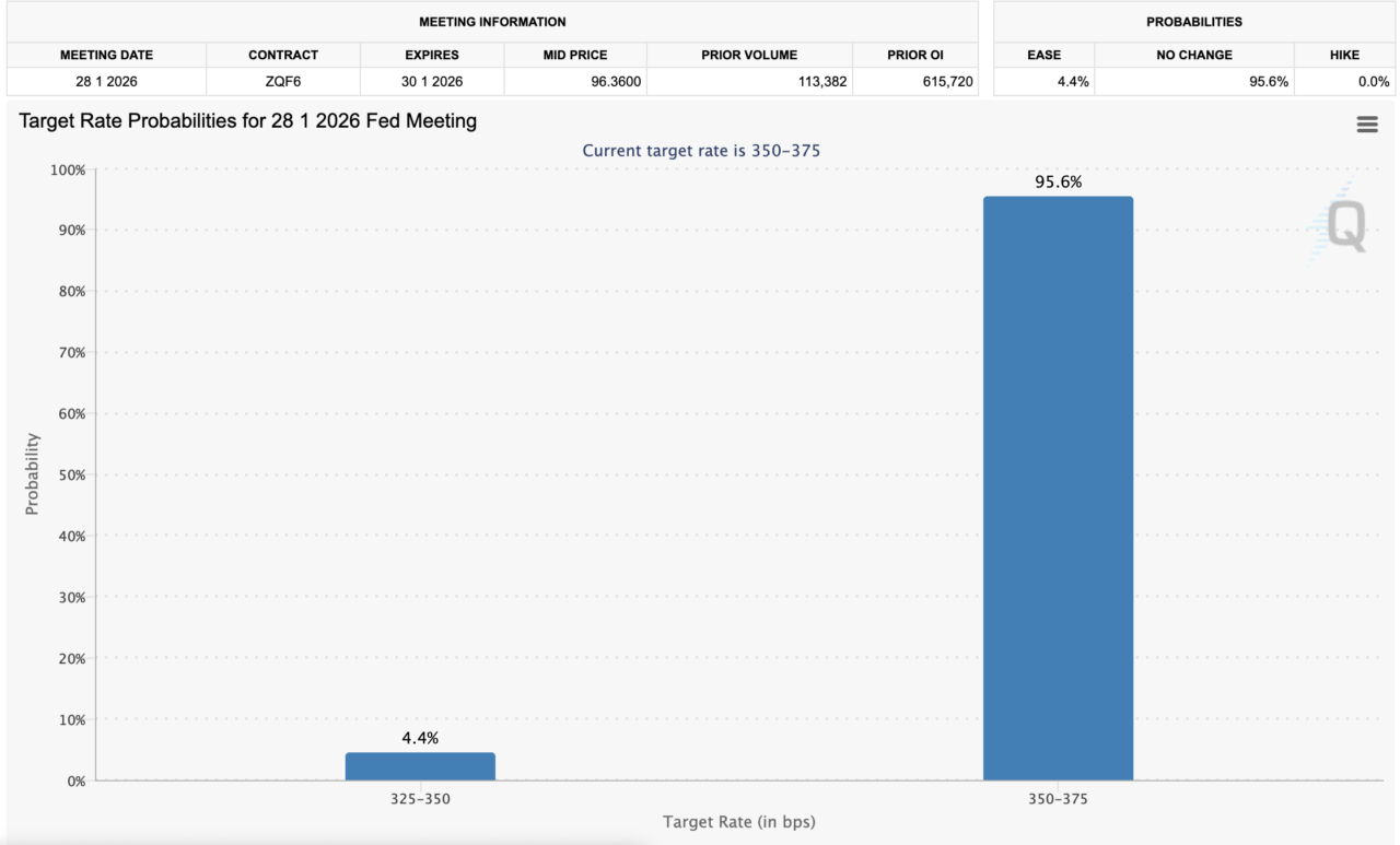 CMEのFedWatchツールによると、次回1月のFOMCは据え置き予想が95.6%と先週の83.4%から上昇しました。また、次々回3月のFOMCでの据え置き予想も71.3%と先週の48.9%から、大幅に上昇しています。全般に利下げ予想が後退しているようですね。
